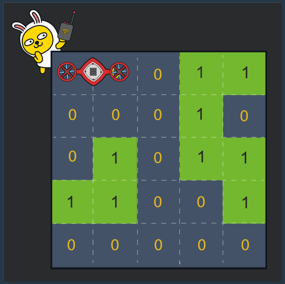 [[0, 0, 0, 1, 1],[0, 0, 0, 1, 0],[0, 1, 0, 1, 1],[1, 1, 0, 0, 1],[0, 0, 0, 0, 0]] 7