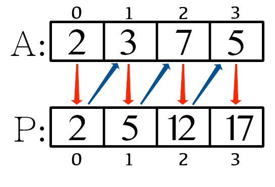 이러한 문제를 해결하기 위해 고안된 방법으로 부분합(Partial Sum or Prefix Sum)이 있다.