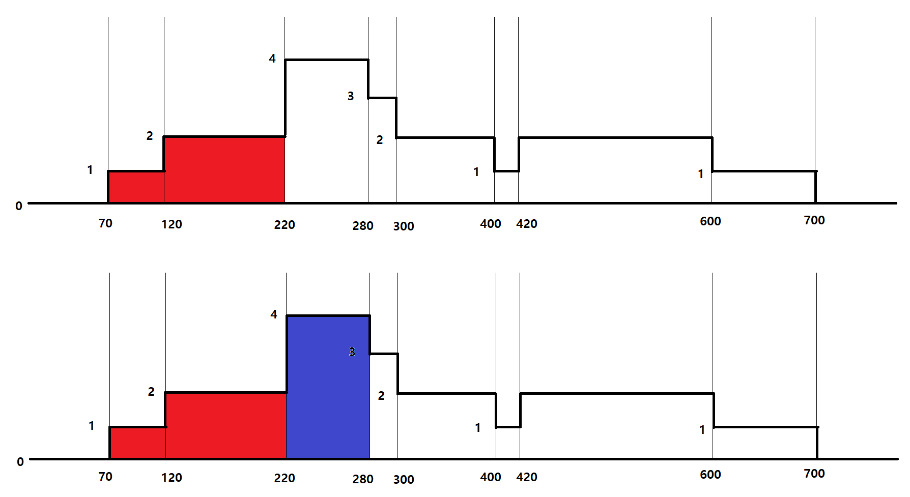 타임라인에 대한 부분합이 만들어졌다면, 이제 각 구간에 대한 누적합을 빠르게 계산할 수 있다.