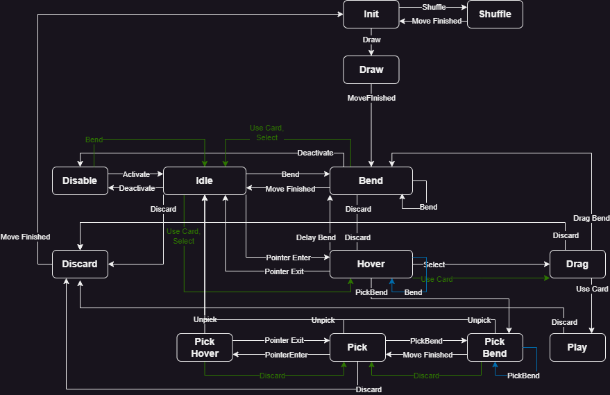 다음은 카드 UI의 조작 및 인풋 시스템에 대한 설계도이다. 기본적으로 모든 상태는 FSM을 통해 관리된다.