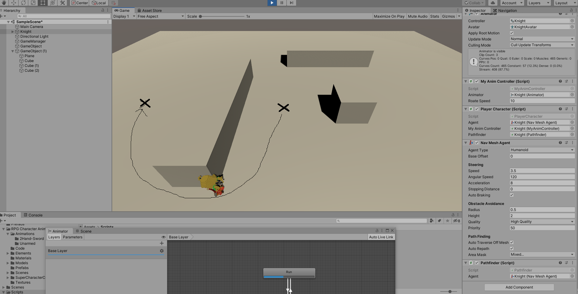 예를 들면 애니메이션 자체에 루트 모션이 포함되어 있는 경우 루트 모션을 활용하여 길찾기 로직을 구현하고 싶을 수 있겠지만 (보폭에 맞춰서 리얼한 모션을 보여주고 싶은 경우), 이런 애니메이션 에셋을 이용하여 길찾기 에이전트를 제작하려 한다면, 애니메이션과 NavMeshAgent가 서로 Transform을 조작하려 할 것이다. 이 상황을 해결해보자.