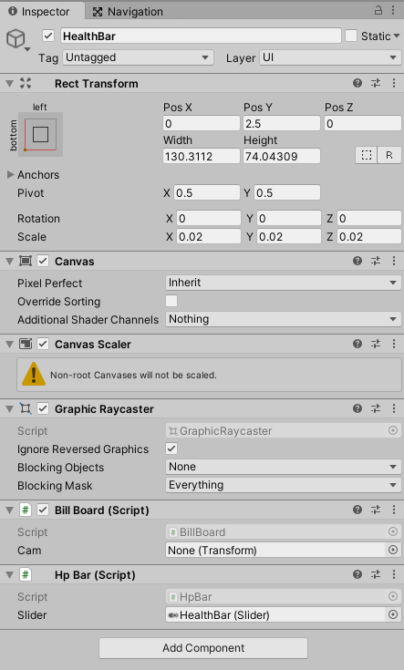 Hp Bar를 GameObject Prefab으로 제작한다.