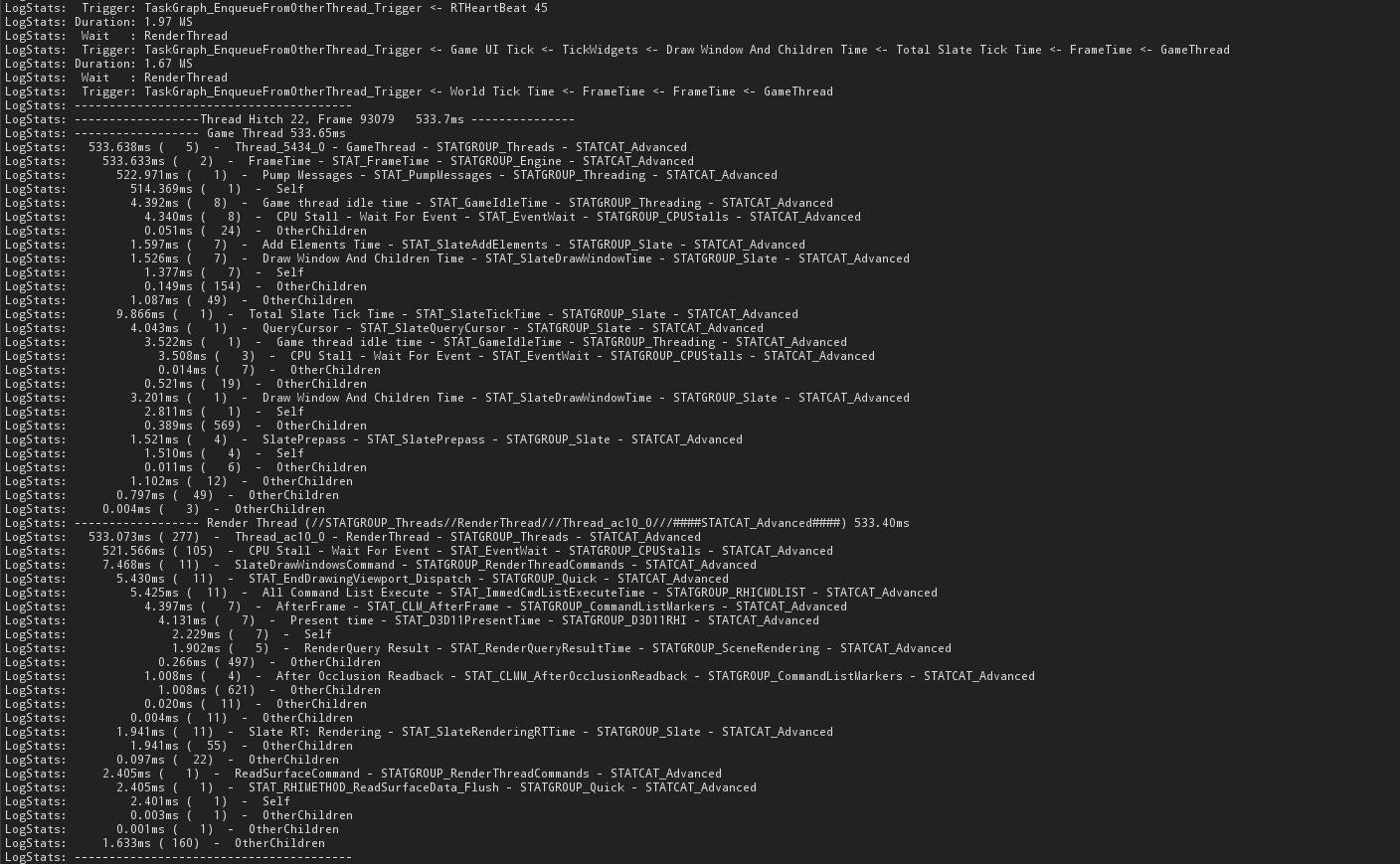 Unreal Editor에서 다음 커맨드를 통해 시간이 오래걸리는 프레임만 선별적으로 추적할 수 있다.